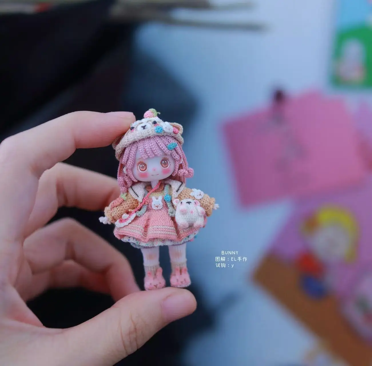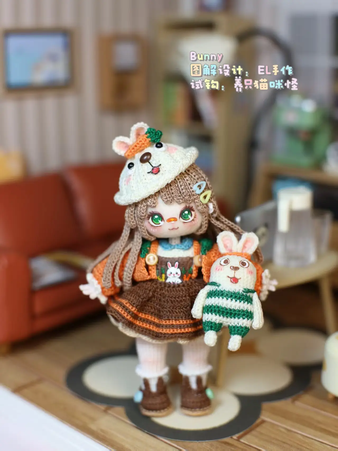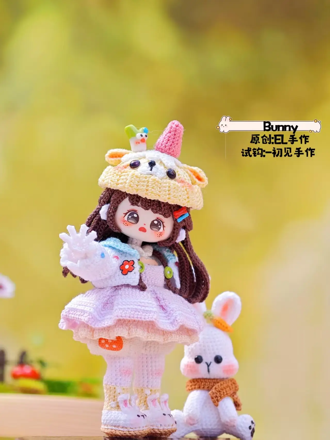 Bring your crochet skills to life with Bunny, a heart-melting handmade doll designed by Elina Lee (@amigurumiwithel). This charming pattern features a detailed outfit complete with a fluffy bunny-eared hat, pastel cardigan, pinafore dress, and tiny accessories — a must-make project for collectors and advanced crocheters who love personality-filled amigurumi.