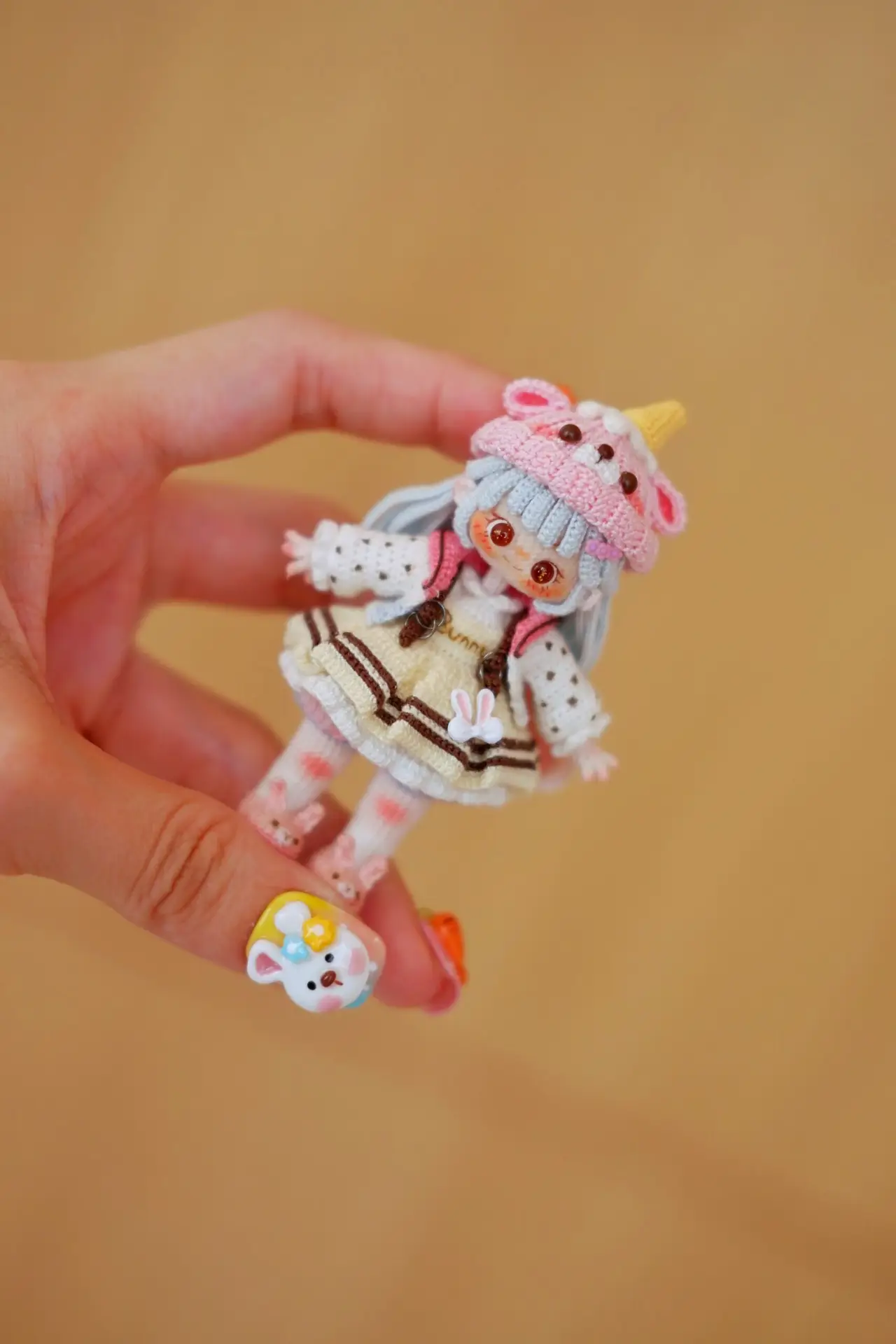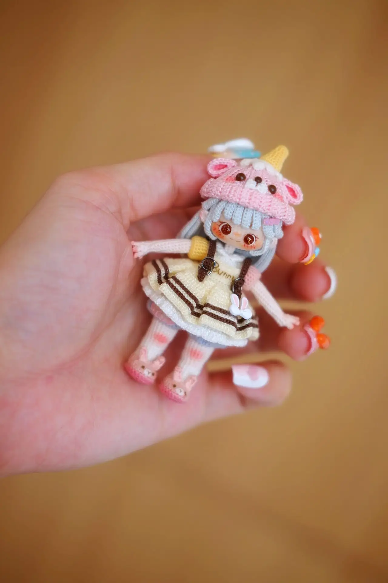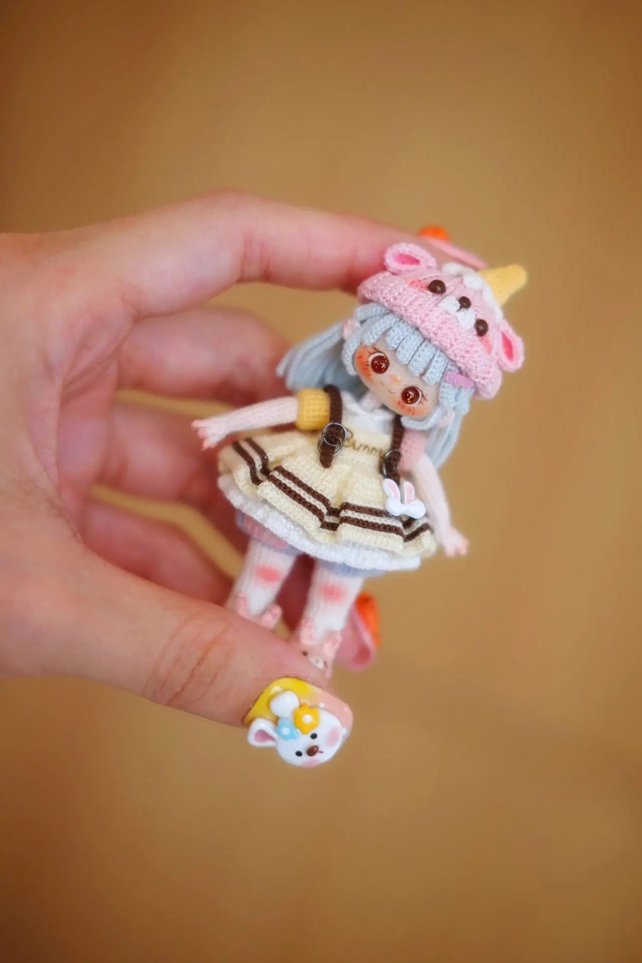 Bring your crochet skills to life with Bunny, a heart-melting handmade doll designed by Elina Lee (@amigurumiwithel). This charming pattern features a detailed outfit complete with a fluffy bunny-eared hat, pastel cardigan, pinafore dress, and tiny accessories — a must-make project for collectors and advanced crocheters who love personality-filled amigurumi.