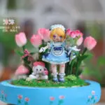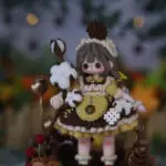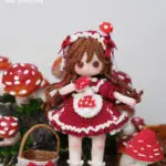 With her soft gray hair, black-and-white ruffled dress, and tiny lace-trimmed apron, Mia embodies the charm of vintage style with a hint of kawaii sweetness. Her delicate details — from the tiny bow on her apron to the frilled socks and polished shoes — make her a true miniature masterpiece for doll lovers and collectors alike.