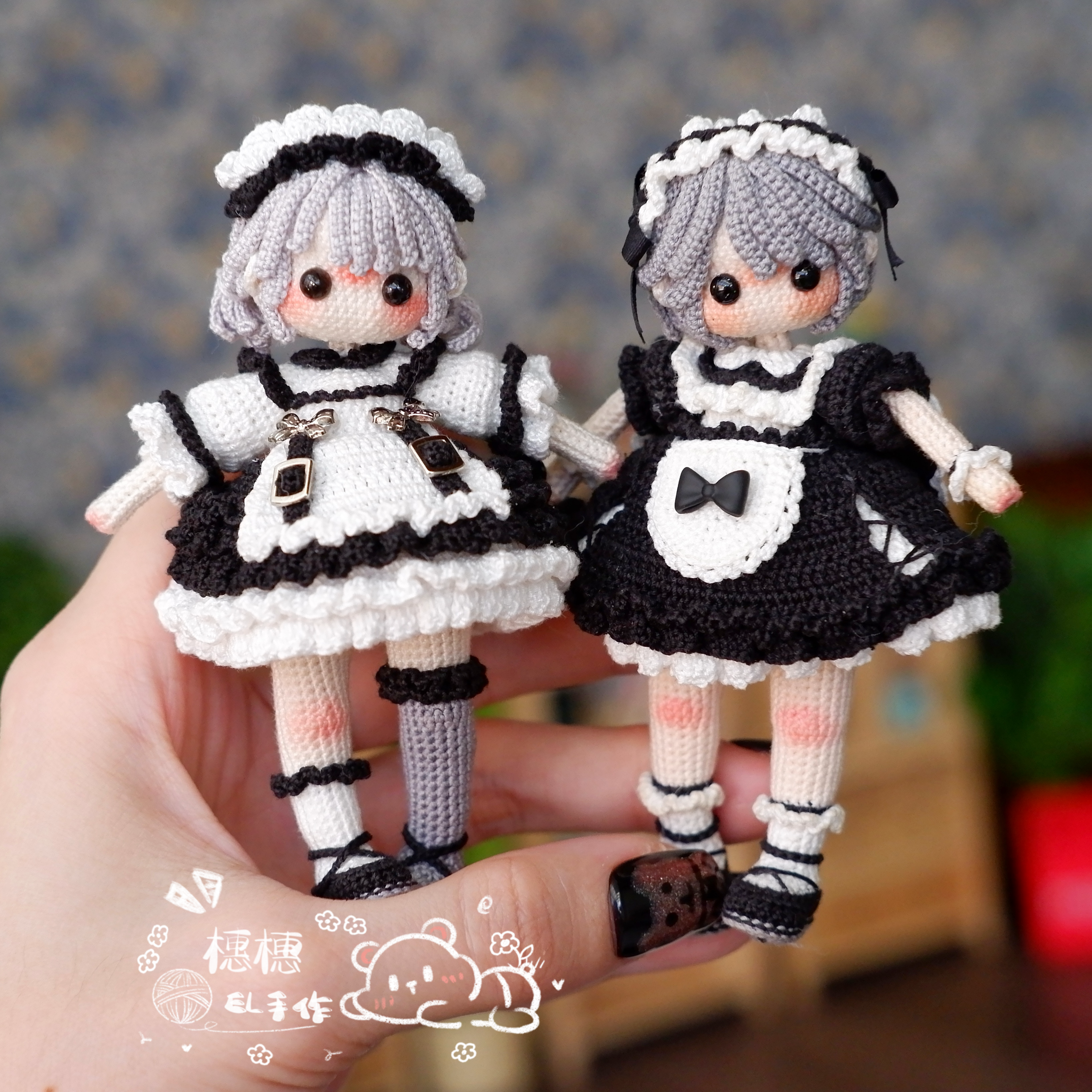 Meet Mia & Eva, a graceful little crochet doll inspired by classic maid fashion and timeless monochrome elegance. 🖤🤍