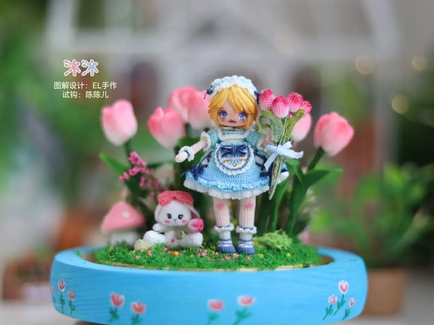 Techniques used: Crochet in rounds, BLO/FLO, color changes, ruffle edging, and fine assembly.